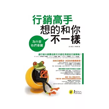 行銷雖然是門值得深入研究的學問,卻也是一項非常生活化、人人皆可運用的工具。不論你是職場上的新兵或老將,《為什麼他們會贏:行銷高手想的和你不一樣》都能為你提供行銷致勝的方法及明確的方向。
